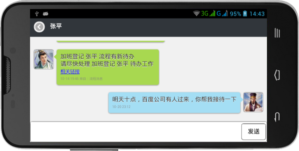 奥科即聊的即时消息,可用于系统下发消息通知、企业员工之间传达即时消息。