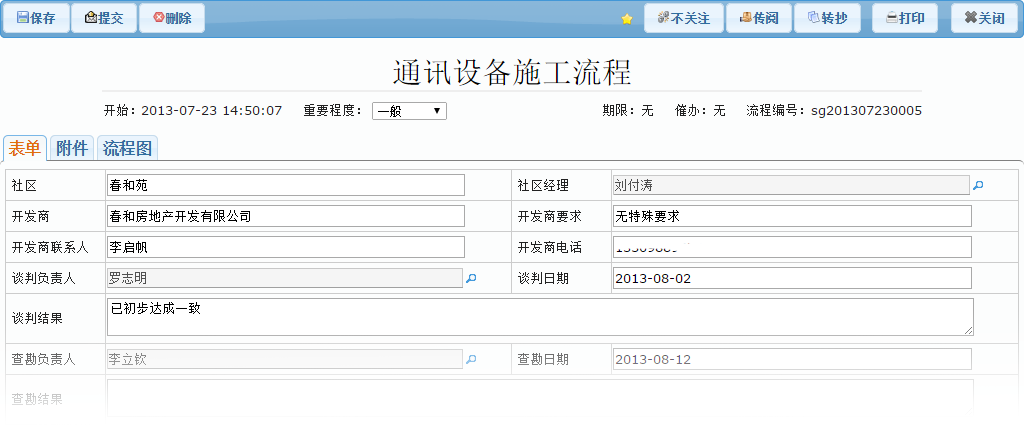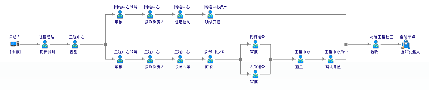 下图是某大型国企的通讯设备施工流程管理,流程有并行处理分支: